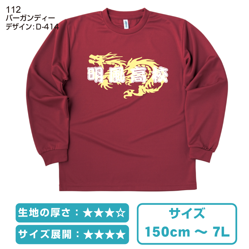 滑らかな肌触りが特徴で、長時間ストレスなく着用できます。ドライ生地のTシャツの中で1番生地が厚いため永く愛用いただけます。 -