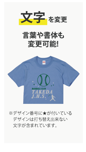 バットを使ったかっこいいなデザイン。プリント位置や大きさを変えることで印象を変えられます。 -