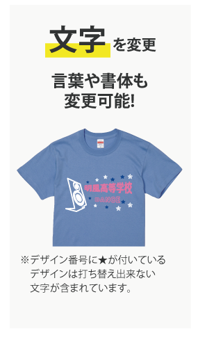 チーム全員の名前を入れられるデザイン。心をひとつして最高のステージにしよう! -