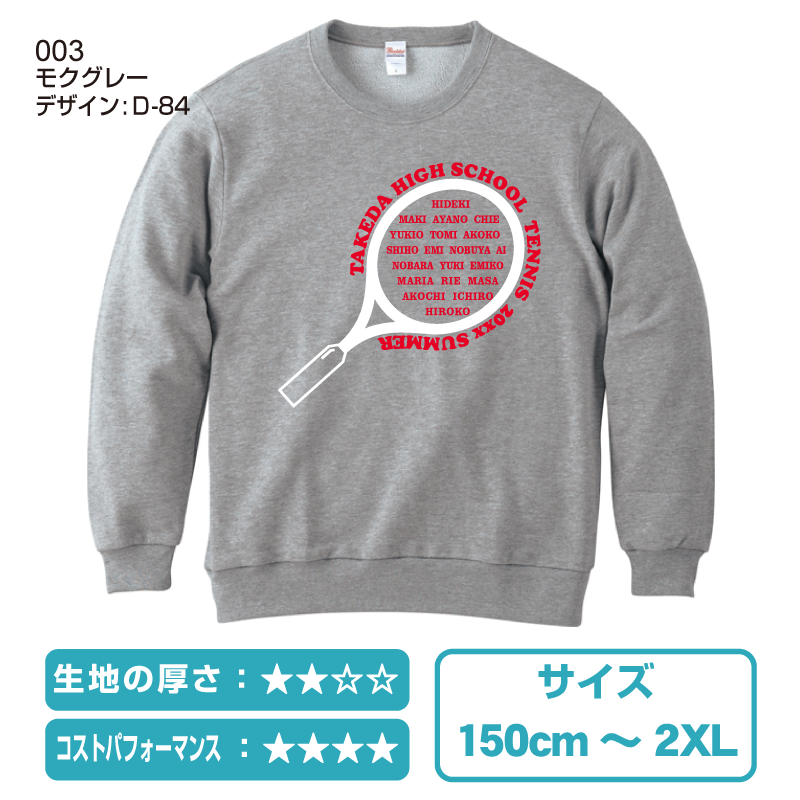 ラケットの中にチームメンバーの名前を入れることはできるデザイン。チーム一丸となって練習に打ち込もう! -