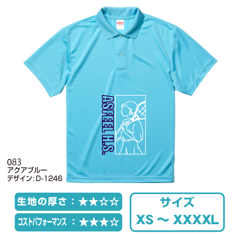 さらさらな肌触りが特徴のベーシックなデザインのドライポロシャツです。汗をかいてもさっと乾くため野外での着用シーンが多い陸上競技部様におすすめ! -