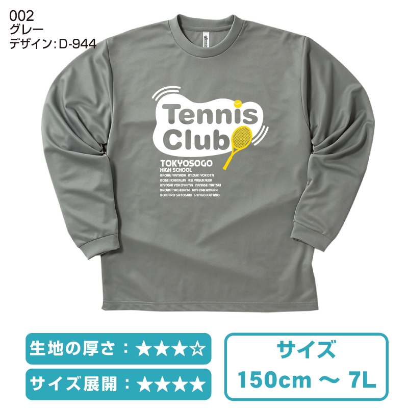 滑らかな肌触りが特徴で、長時間ストレスなく着用できます。ドライ生地のTシャツの中で1番生地が厚いため永く愛用いただけます。 -