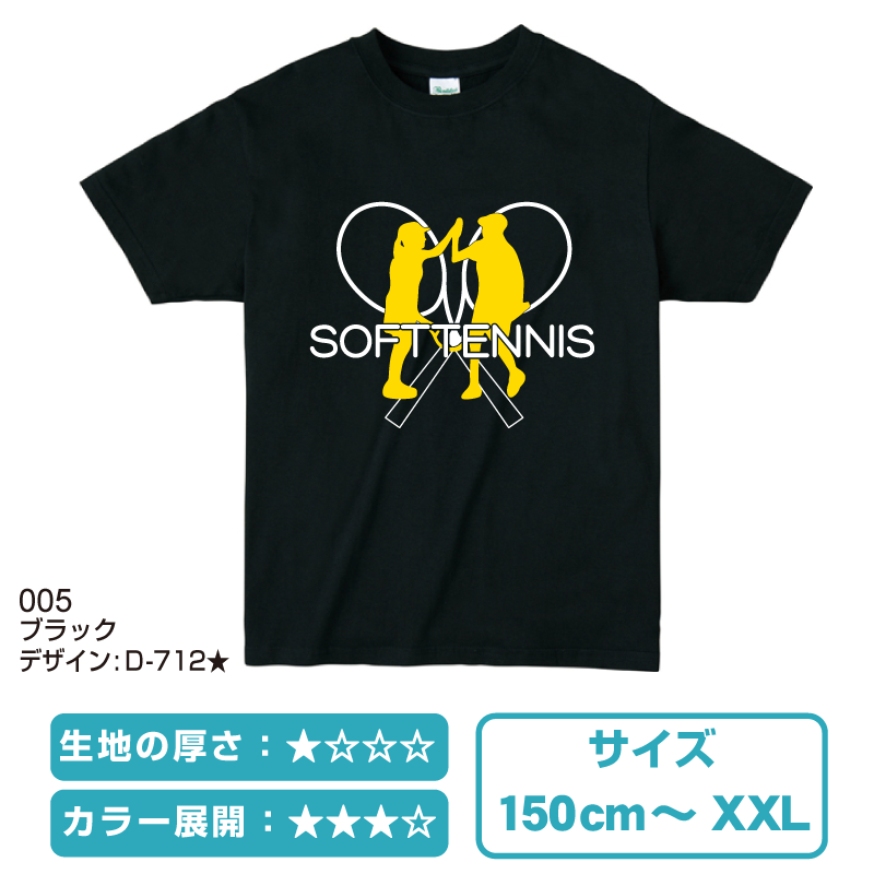 ラケットとボールを使用したポップなデザイン。お揃いのTシャツを着てチームの団結力も高めよう! -