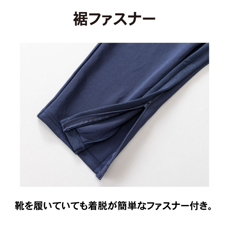 高品質かつ低価格に徹底的にこだわった一枚。ストレートなシルエット。裾には、靴を履いていても脱着が簡単なジッパーが付いています。