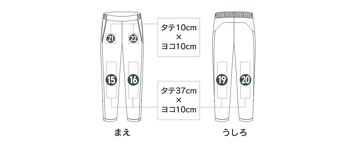 すべて統一のデザインでエンブレムや学校名、部活名などを印刷します。共通プリント専用書体、プリントカラーからご希望のものを選択してください。一つの印刷範囲内であれば、何色使っても料金は変わりません。