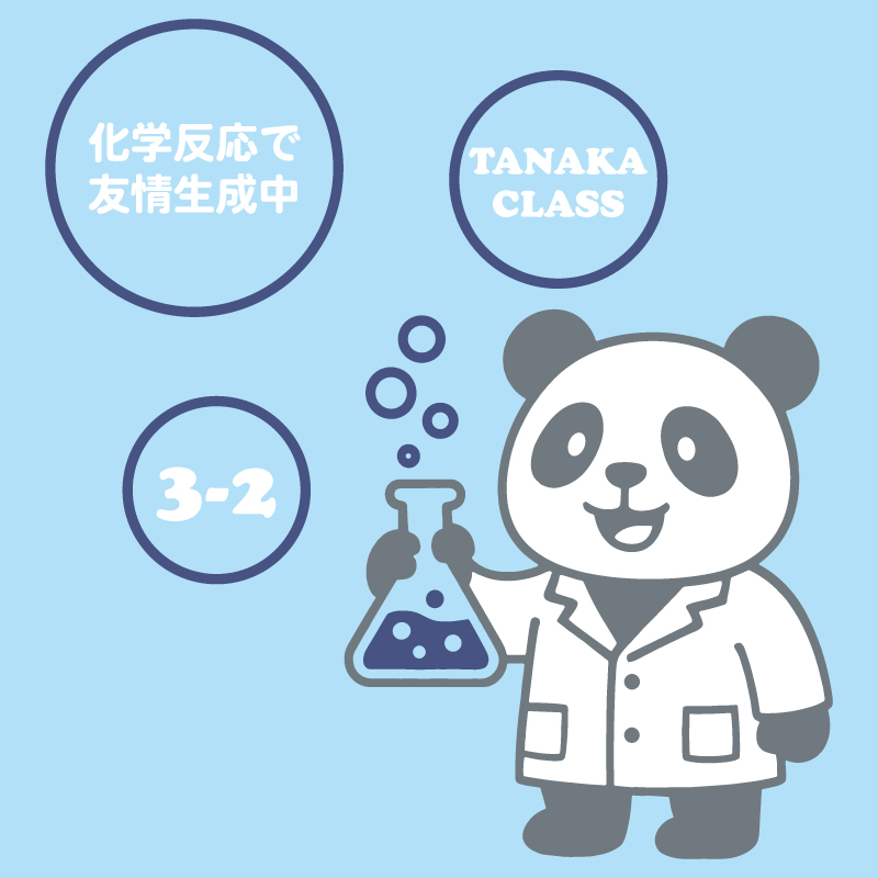 検索ワード:クラスTシャツ、クラT、部活動、パンダ、ぱんだ、化学、科学、実験、フラスコ、アルコール、泡、薬、薬瓶、白衣、調剤、ケミストリー、アニマル、動物