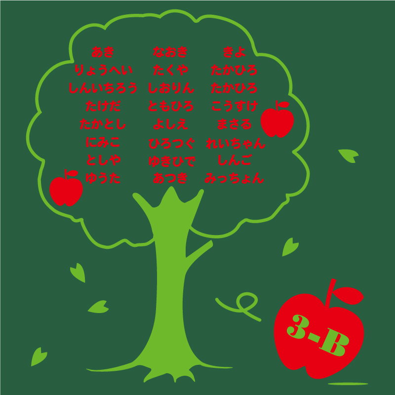 検索ワード:クラスTシャツ、クラT、球技大会、クラスマッチ、みんなの名前、個人名、あだ名、ニックネーム、木、りんご、食べ物、アップル、花びら