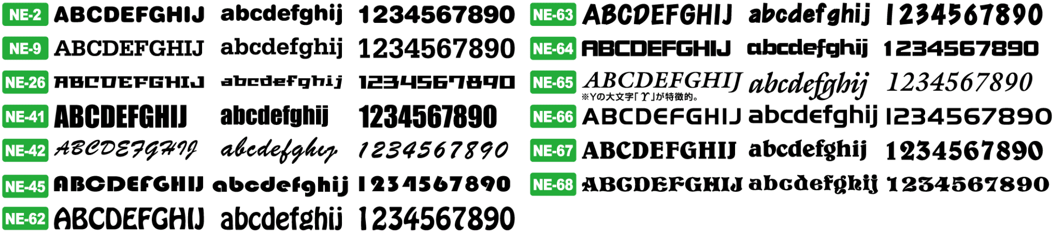 カッティングシート用ネーム・番号専用 プリント書体&カラー