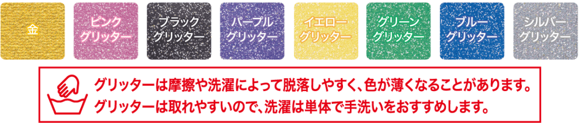 一人ひとりのお名前や番号をインクジェットプリントで印刷します。価格を抑えながら、ひらがな・カタカナ・漢字のネームにも対応可能!こ要望にお応えし、金色やグリッターカラーもついに登場!